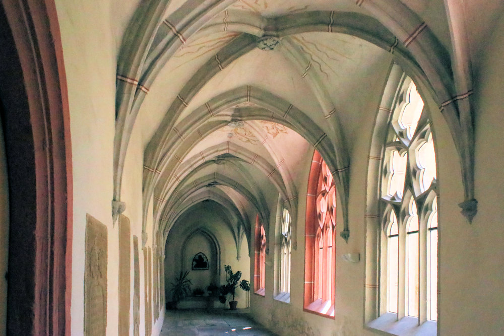 um 1400 (Wölbung Chor, Kreuzgang), 1444 (Schlussstein südliches Seitenschiff), 1487 und 1497 (Schlusssteine Querhaus), 1536 (nördliches Querschiff, nördliches Querhausportal), 1660er Jahre (Abnahme romanische Turmgeschosse, Barockisierung des Inneren) - Baustil