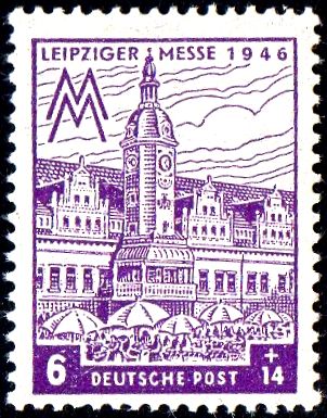 In der Sowjetischen Besatzungszone wurden von der Oberpostdirektion für West-Sachsen im Jahr 1946 die ersten Briefmarken zur Leipziger Messe herausgegeben. Alle Werte zeigen das Alte Rathaus.