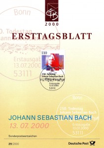 Anlässlich des 250. Todestages des Komponisten gibt die Deutsche Post eine Sondermarke mit einer Darstellung Bachs heraus.