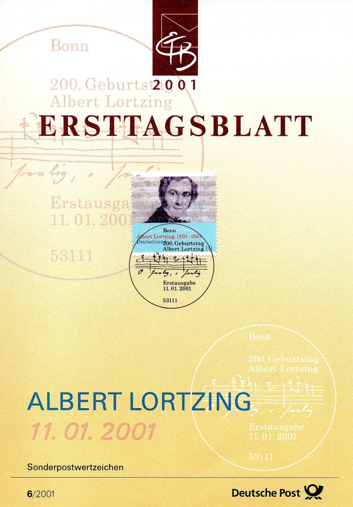 Die Deutsche Post ehrte Albert Lortzing zu seinem 200. Geburtstag 2001 mit einer Sonderbriefmarke.