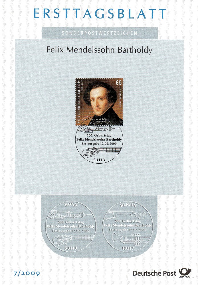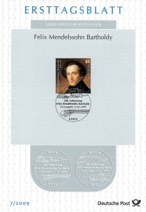 Zu seinem 200. Geburtstag ehrte die Deutsche Post Felix Mendelssohn-Bartholdy im Jahr 2009 mit einer Sonderbriefmarke.