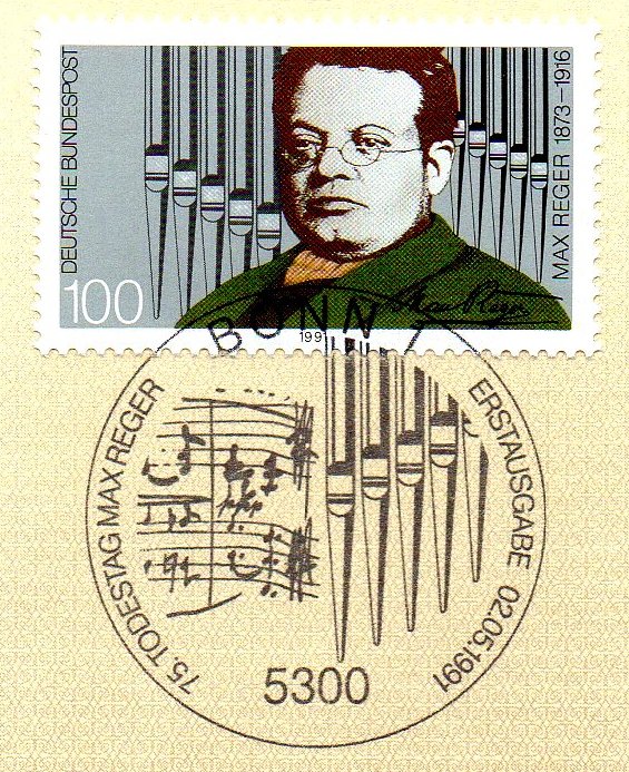 Anöässlich des 75. Todestages von Max Reger gab die Deutsche Post 1991 eine Sonderbriefmarke heraus.