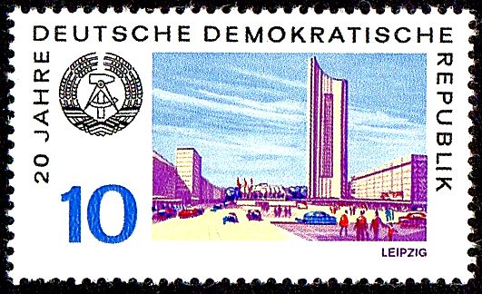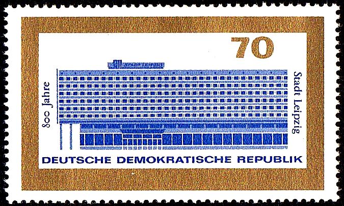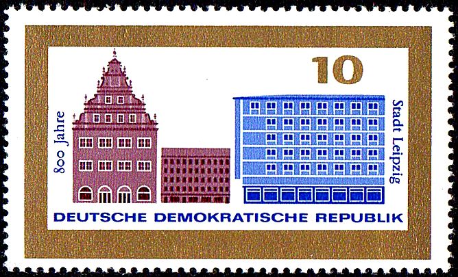 In nur fünfzig Jahren ist Leipzig um 200 Jahre gealtert. 1965 feierte man 800 Jahre Stadt Leipzig. Mit dem Auffinden der Urkunde des Bischofs Thietmar von Merseburg musste man die bisherigen Erkenntnisse korrigieren. Die vier Sonderbriefmarken der Deutschen Post der DDR aus dem Jahr 1965 zeigen die Alte Ratswaage am Markt mit neuer Wohnbebauung, das Alte Rathaus, die Oper und die neue Hauptpost am Augustusplatz sowie das Hotel Deutschland am Augustusplatz.