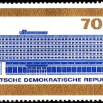 Die Deutsche Post der DDR gab zwischen 1973 und 1989 die Dauerserie „Aufbau in der DDR“ in Groß- und Kleinformaten heraus. Auf der Briefmarke mit dem Wert von 0,70 Mark sind das Alte Rathaus und das Wintergartenhochhaus abgebildet.
