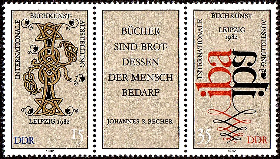 Die Deutsche Post der DDR gab anlässlich der IBA 1982 einen Zusammendruck heraus. Im Jahr 1989, zur letzten Buchkunstaustellung in Leipzig, wurden drei Einzelmarken herausgegeben.