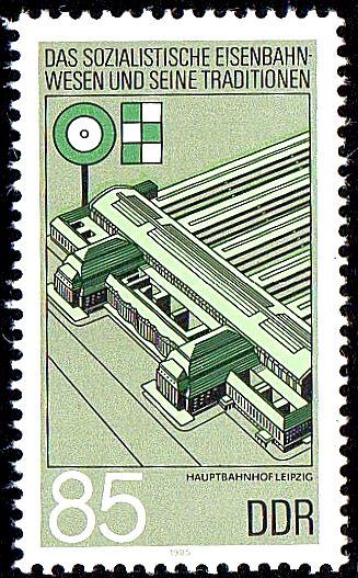 Der technische Fortschritt war in der Mitte des 19. Jahrhunderts nicht mehr aufzuhalten. 1834 nahm die erste deutsche Ferneisenbahn von Leipzig nach Dresden ihren Betrieb auf. Die Deutsche Post der DDR gab anlässlich der 150. Wiederkehr dieses Jubiläums zwei Briefmarken unter dem Thema „Das sozialistische Eisenbahnwesen und seine Traditionen“ heraus. Eine Marke zeigt den Leipziger Hauptbahnhof.