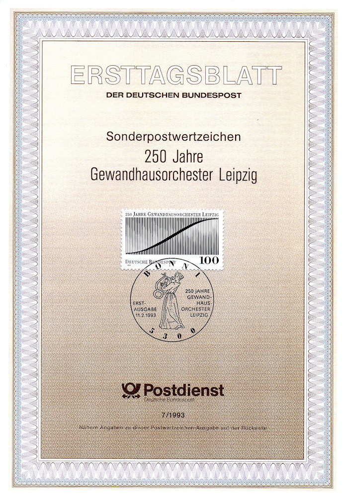Die Deutsche Post gab anlässlich des 250. Jahrestages der Wiederkehr der Gründung des Gewandhausorchesters im Jahr 1993 eine Sonderbriefmarke heraus.