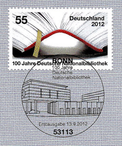 Die Deutsche Post gab anlässlich des 100. Jahrestages der Gründung der Deutschen Bücherei eine Sonderbriefmarke heraus.