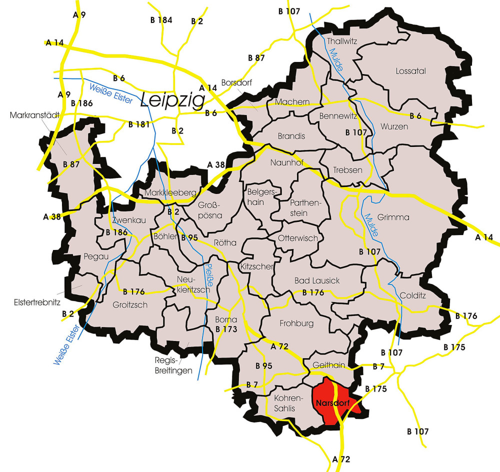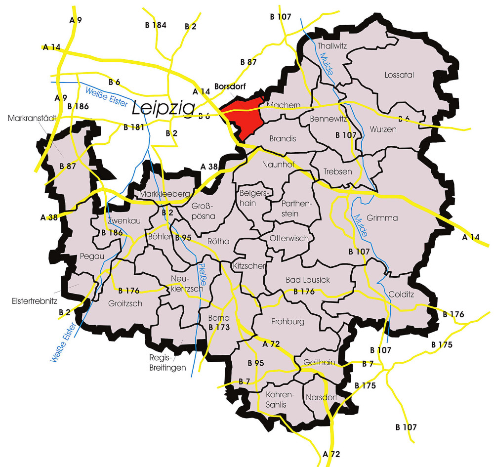 Borna ist die Kreisstadt im Südwesten des Landkreises Leipzig. Die Stadt Borna besteht aus den Ortsteilen: