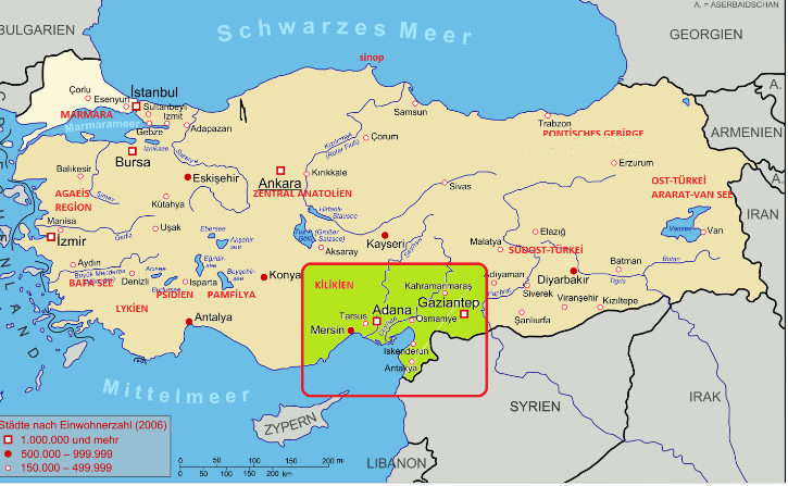 Kilikien ist eine Region im Süden der Türkei. Der Name Kilikien wird erstmals 858 v. Chr. in assyrischen Quellen genannt. Bezeichnet wurde damals nur der von den Griechen zuerst aufgesuchte gebirgige Teil. Die historische Landschaft Kilikien weiterlesen »
