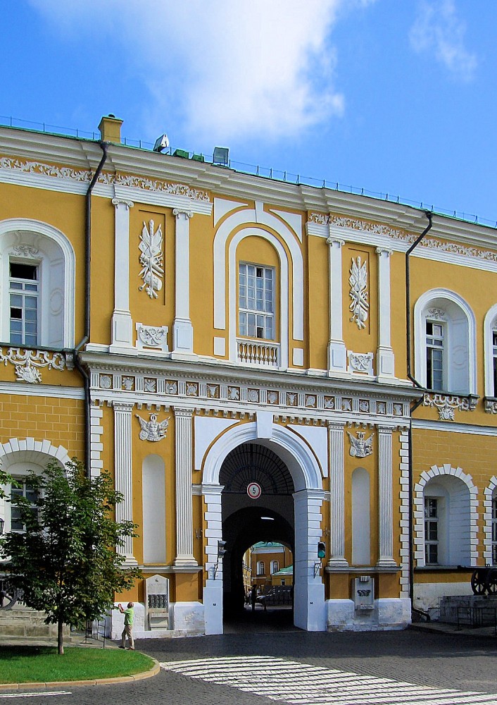 Arsenal (Zeughaus)Das Arsenal ist ein weiteres aus dem 18. Jahrhundert stammendes Bauwerk im Moskauer Kreml. Es nimmt die gesamte nordwestliche Ecke des Kremlgeländes ein und ist auch an mehreren Stellen außerhalb der Kremlmauer sichtbar, so beispielsweise vom Alexandergarten aus. Innerhalb des Kremls ist das Arsenal das erste Gebäude, das man beim Betreten der Zitadelle über das Dreifaltigkeitstor auf der linken Seite sieht.