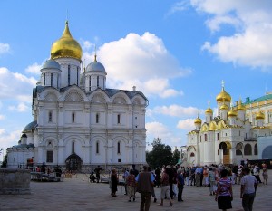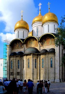 Mariä-Entschlafens-KathedraleVon den drei Kathedralen, die das architektonische Ensemble des Kathedralenplatzes in der Mitte des Kremlgeländes prägen, ist die Mariä-Entschlafens- oder auch Uspenski-Kathedrale, die älteste. Sie wurde 1475 bis 1479 errichtet und ist das älteste vollständig erhaltene Bauwerk in Moskau und damit auch unter allen Kremlbauten.