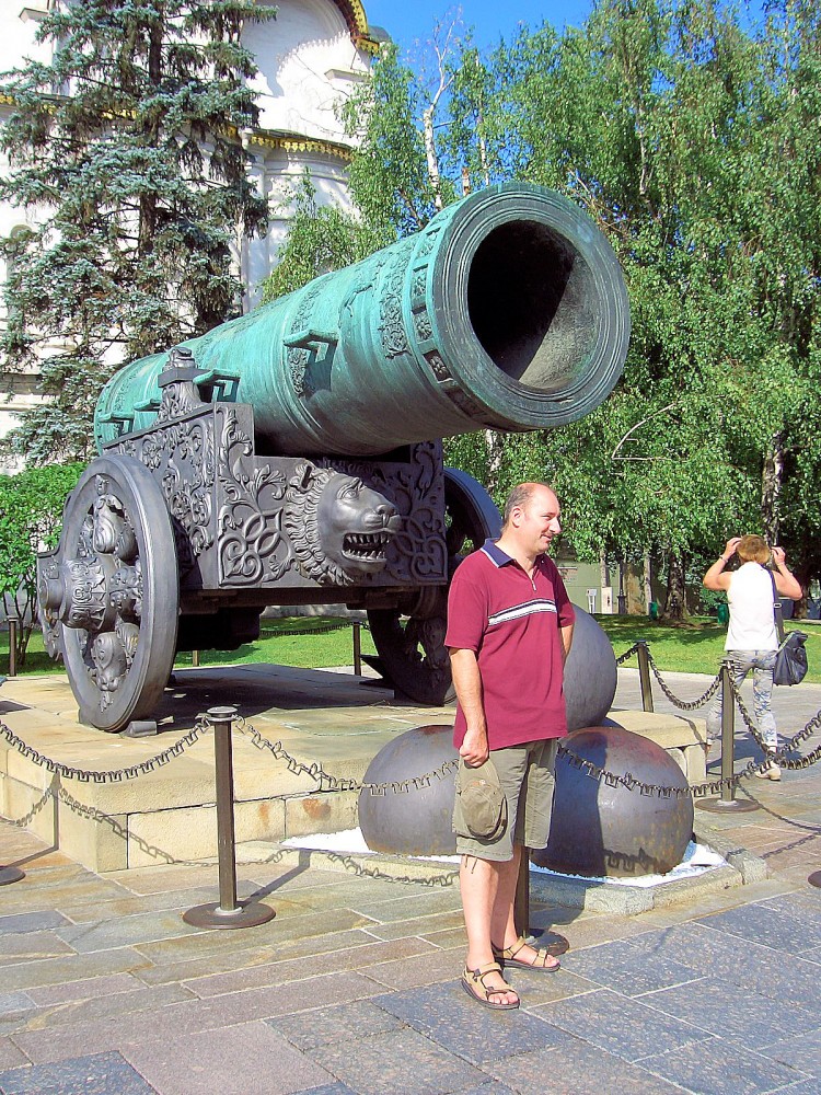 ZarenkanoneDie auf dem Iwanplatz stehende Zarenkanone stellt ist das wohl bekannteste Erzeugnis russischer Gusstechnik des 16. Jahrhunderts. Entgegen der Bezeichnung ist sie waffentechnisch keine Kanone, sondern eine Steinbüchse. Mit ihrem Kaliber von 890 mm zählt sie zu den größten Artilleriegeschützen weltweit, ist allerdings kein einziges Mal zum Einsatz gekommen. Die Lafette, auf der die Kanone steht, sowie die neben ihr liegenden Kugeln wurden als reine Dekoration im 19. Jahrhundert gefertigt.