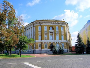 VerwaltungsgebäudeDas Verwaltungsgebäude des Moskauer Kremls, manchmal auch Gebäude 14 genannt, steht an der Ostseite des Iwanplatzes in der Nähe des Erlösertors und ist, wenngleich es als ein weiterer Teil der Präsidentenresidenz weiträumig gesperrt ist, von der gegenüberliegenden Seite des Platzes aus gut sichtbar.