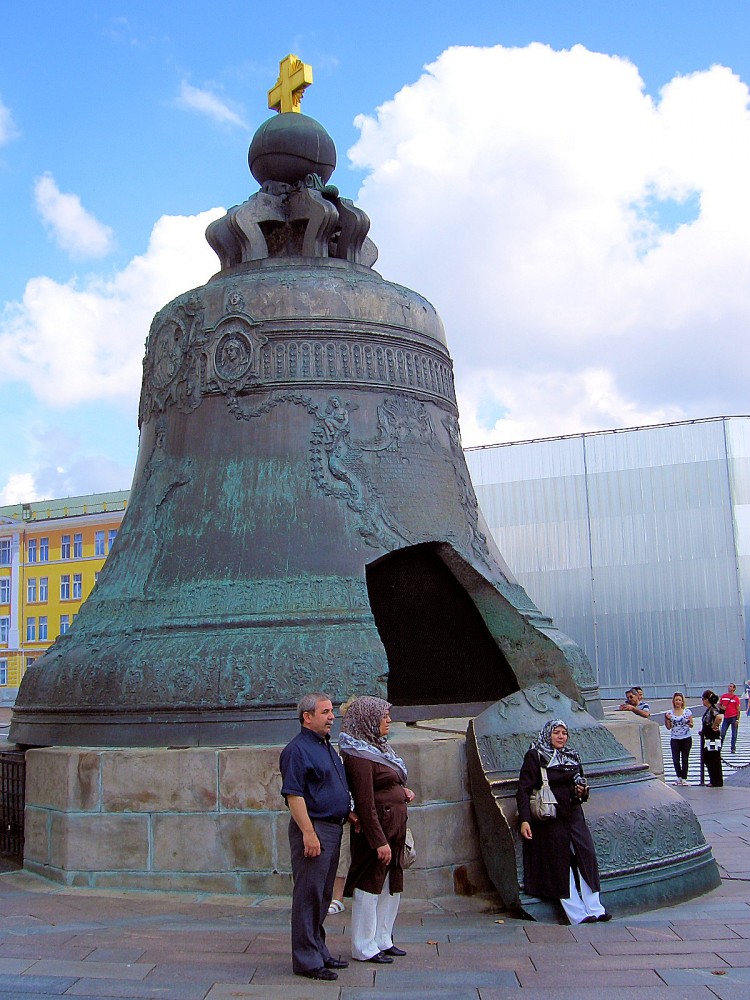 ZarenglockeEin weiteres markantes Erzeugnis russischer Gießermeister ist die 6,14 Meter hohe Zarenglocke, die ebenfalls am Iwanplatz auf einem speziell gefertigten Sockel steht. Auch sie wurde kein einziges Mal ihrem eigentlichen Zweck nach verwendet.