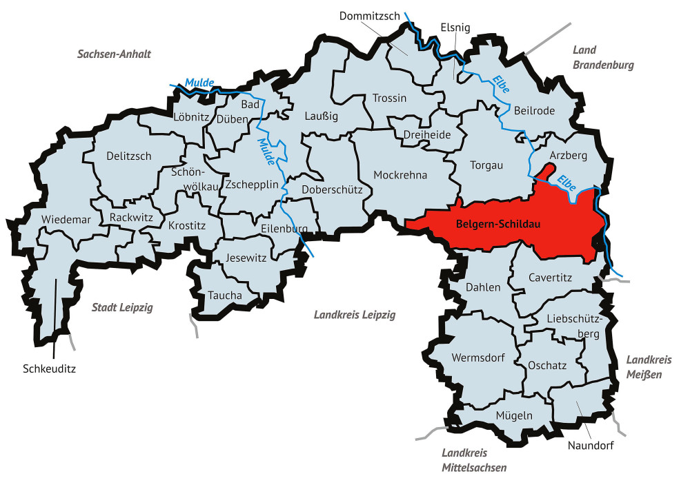 Belgern-Schildau ist eine Kleinstadt im Süden des Landkreises Nordsachsen. Die Stadt Belgern-Schildau setzt sich aus den folgenden Ortsteilen zusammen: