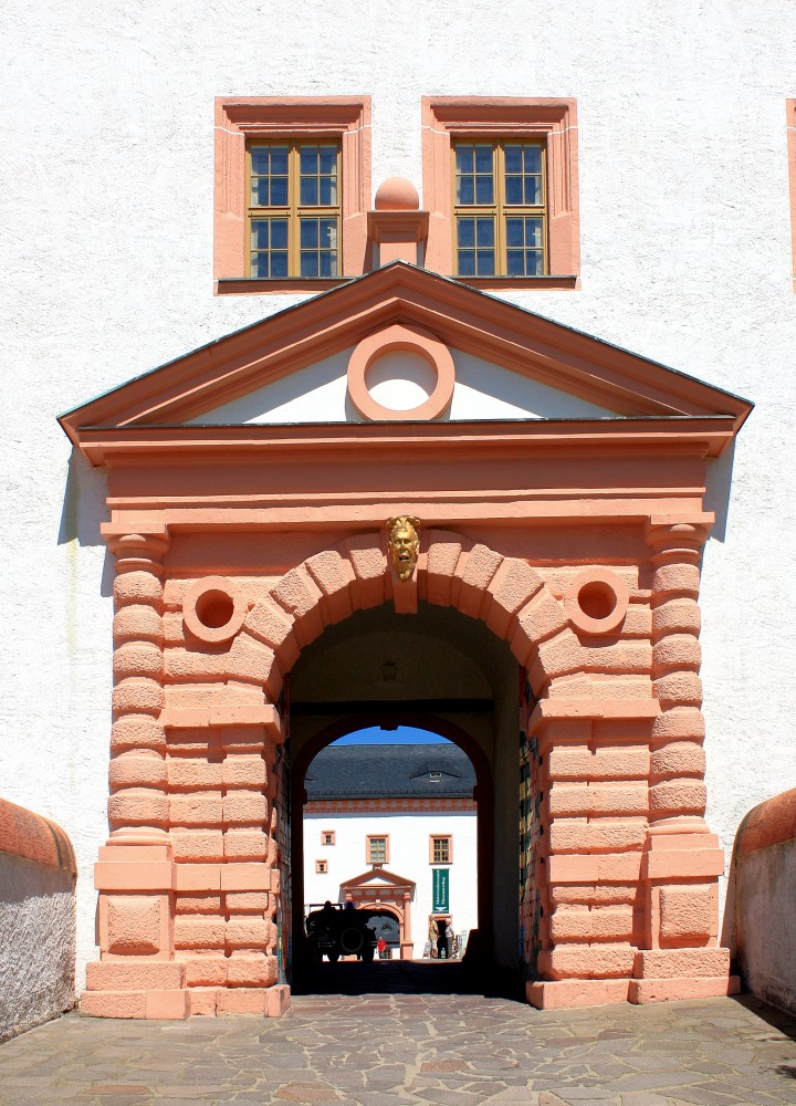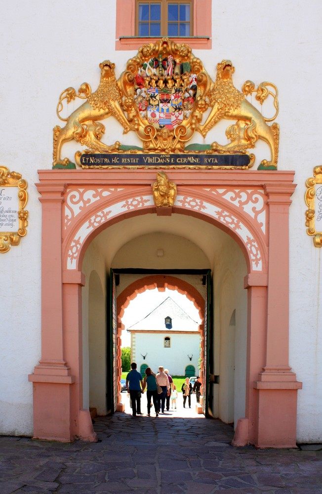 Hauptportal zur Nordbrücke dreizonig, Triumphportalartig gestaltet, dem Kernschloss anschließend ein Wirtschaftshof mit Brunnenhaus, - Dachform