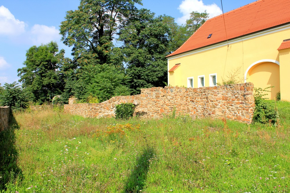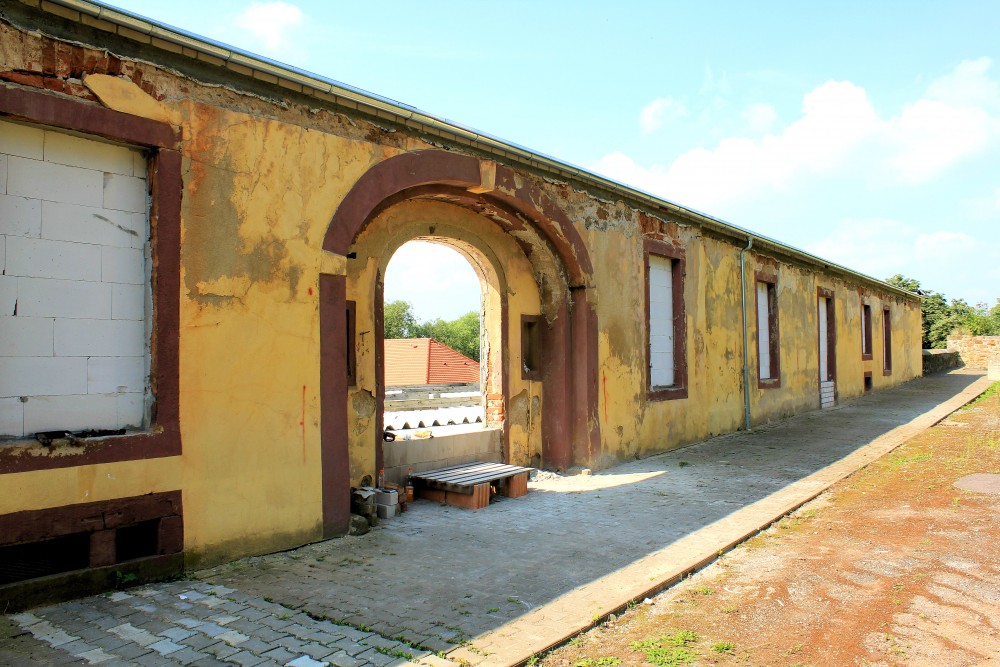 - einst große, geschlossene Gutsanlage auf rechteckigem Grundriss mit einst freistehendem Schloss.