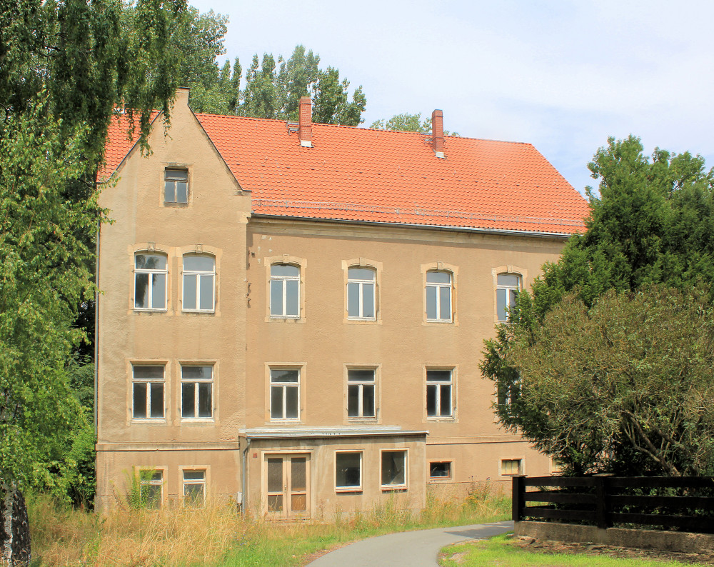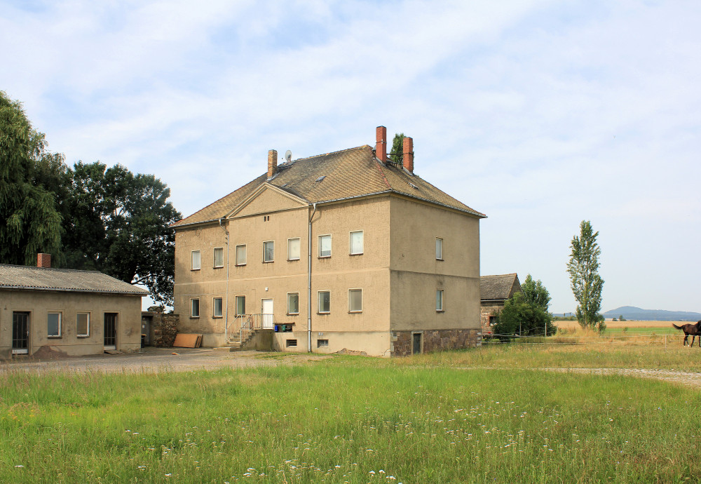 Das Freigut in Gaunitz wurde weitgehend abgerissen. Erhalten ist das im Kern klassizistische Wohnhaus.