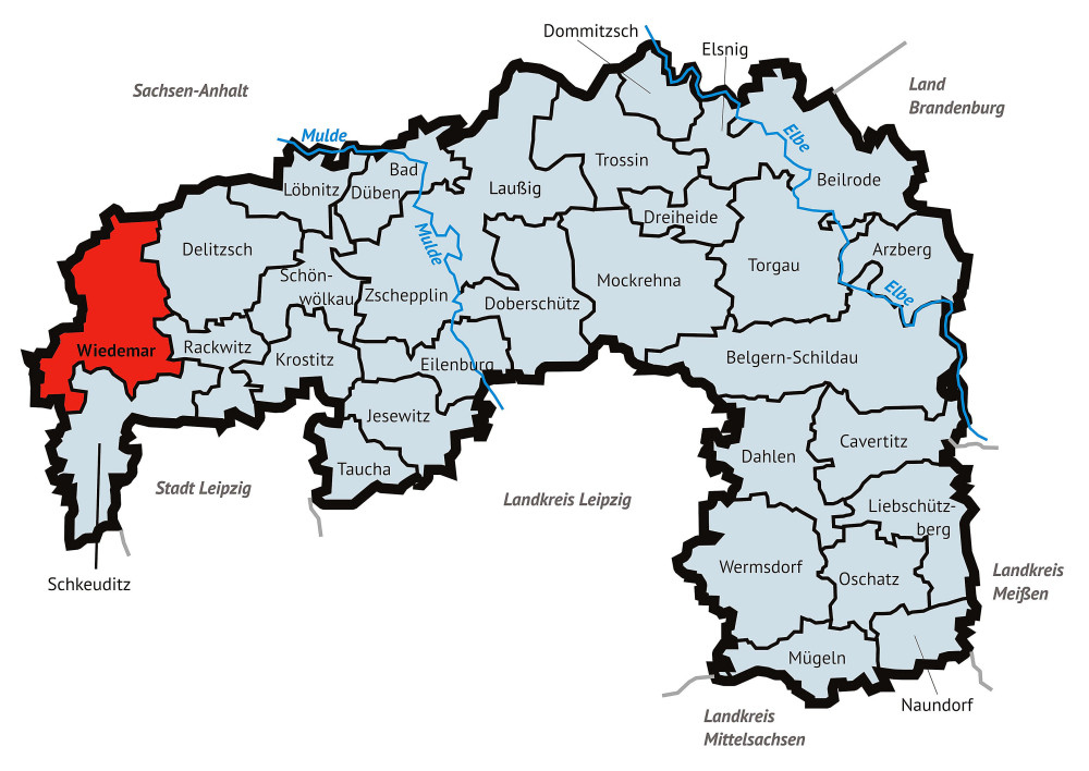 Wiedemar ist eine Gemeinde im Westen des Landkreises Nordsachsen. Die Gemeinde Wiedemar setzt sich aus folgenden Ortsteilen zusammen:
