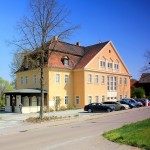 - Herrenhaus: Putzfassade, Giebeldreieck mit Formensprache des Expressionismus,