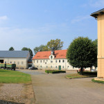 - großer, offener Gutshof auf unregelmäßigem Grundriss mit freistehendem Herrenhaus