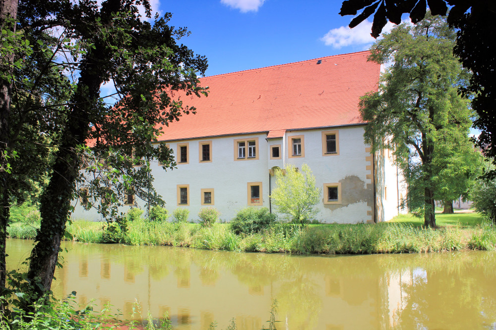 - aus einer mittelalterlichen Wasserburg hervorgegangenes Rittergut auf offenem, etwa quadratischem Grundriss, Altes Schloss auf L-förmigem Grundriss
