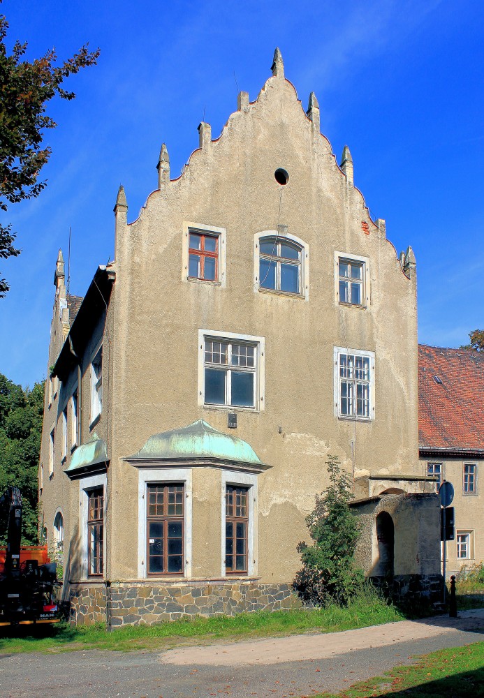 - Putzfassade, Herrenhaus mit Wellengiebeln und Obelisken,