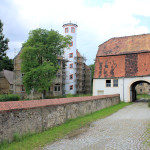 - Ostflügel auf rechteckigem Grundriss, westlich dreiflügeliger Bau, nördlich dreiflügeliger Wirtschaftshof mit Torhaus, Ursprung war eine Wasserburg