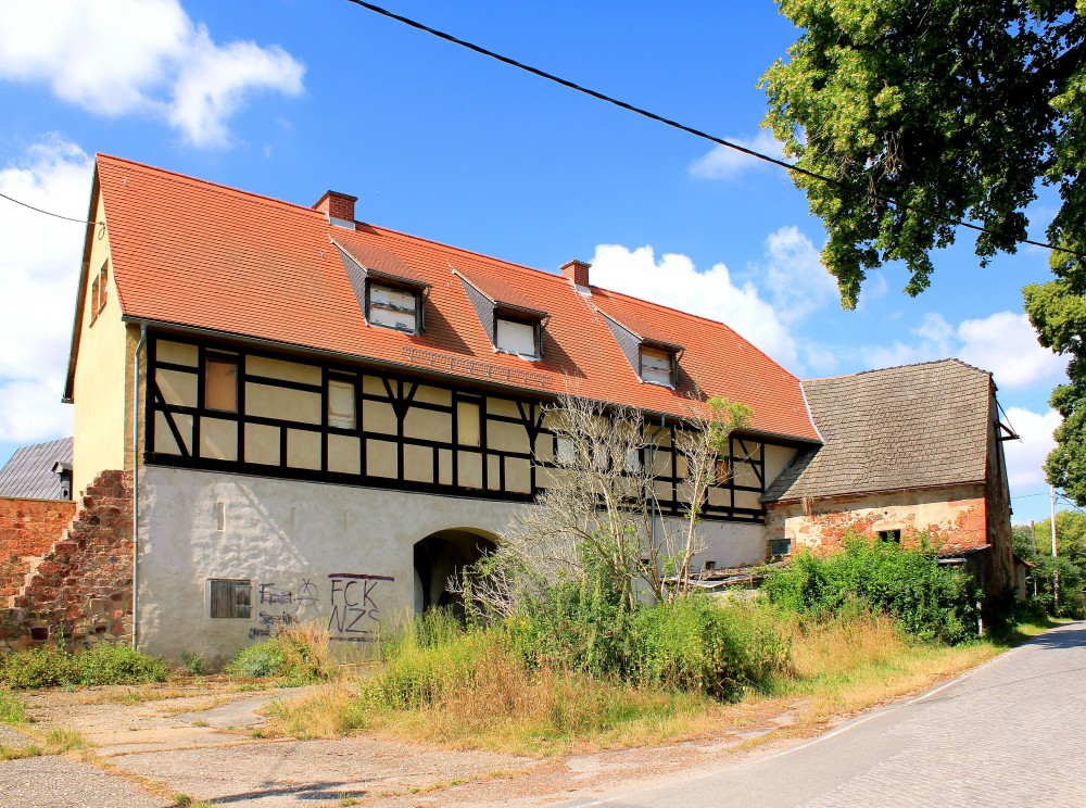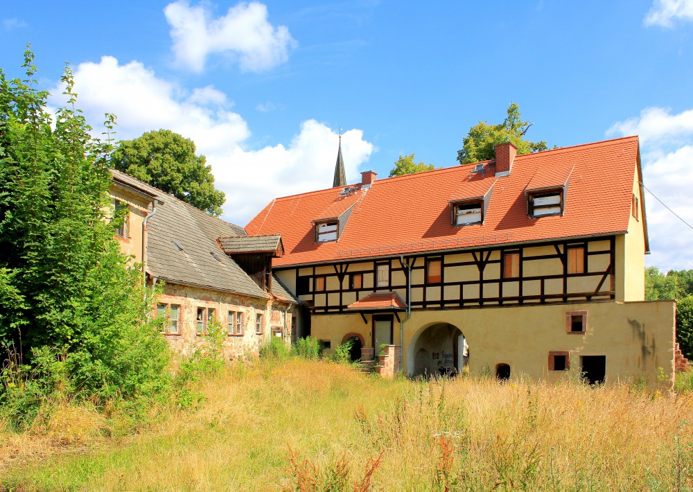 - Das Herrenhaus des Rittergutes in Syhra ist in einem schadhaften Zustand. Das Torhaus ist teilsaniert.