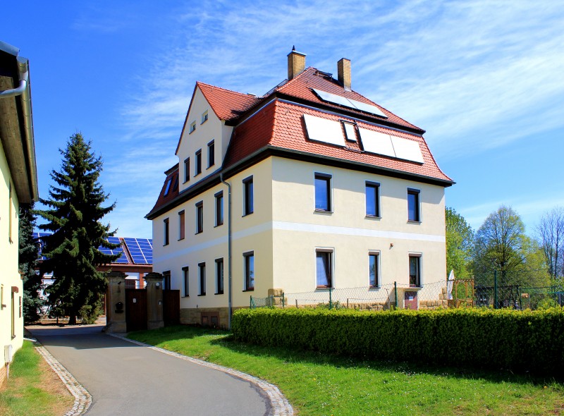 - um 1910 für einen Vorgängerbau errichtetes Gebäude mit schlichter Gestaltung, Fassade vermutlich später verändert,