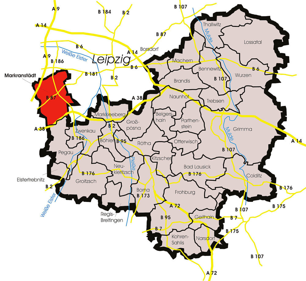 Markranstädt ist eine Kleinstadt im Westen des Landkreises Leipzig. Zur Stadt Markranstädt gehören die Ortsteile