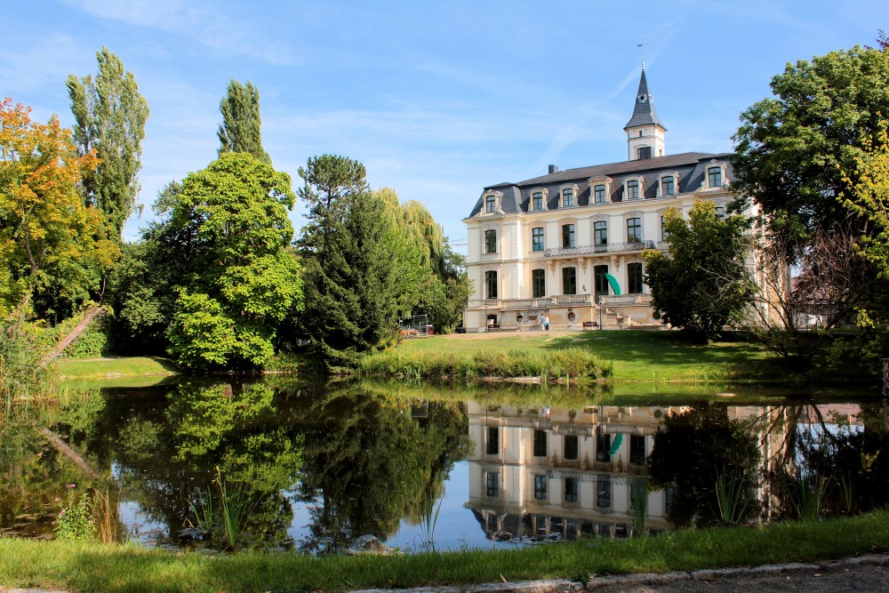 - Das Schloss Schönefeld ist saniert. Der Park ist in einem gepflegten Zustand.