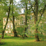 - Herrenhaus: Putzfassade, Putzspiegel mit Ornamenten, runder Eckturm