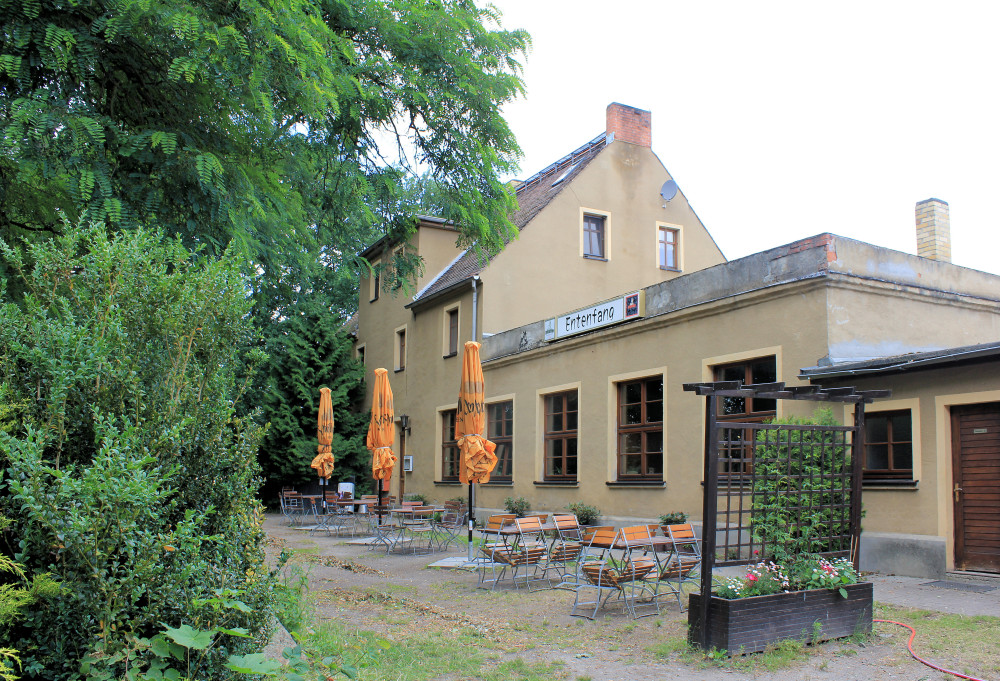 - Die Gaststätte mit Saal ist saniert, das alte Saalgebäude ist ruinös.