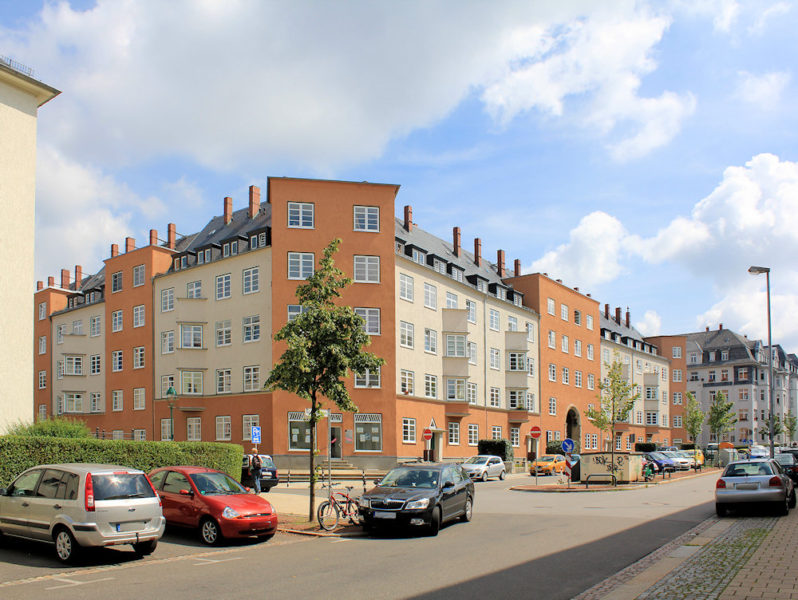 Der Helenenhof auf dem Kaßberg in Chemnitz steht in Blockrandebauung um einen grünen Hof.