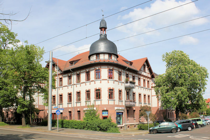 Das Wohn- und Geschäftshaus Ernst-Toller-Straße 7 in Lößnig steht zwischen dem S-Bahnhof Lößnig und der Siedlung Rundling in offener Blockrandbebauung.