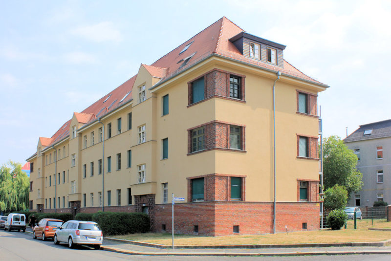 Der Wohnblock Ostheimstraße 24 bis 26 in Sellerhausen-Stünz steht in offener Blockrandbebauung nahe dem Friedhof Sellerhausen.