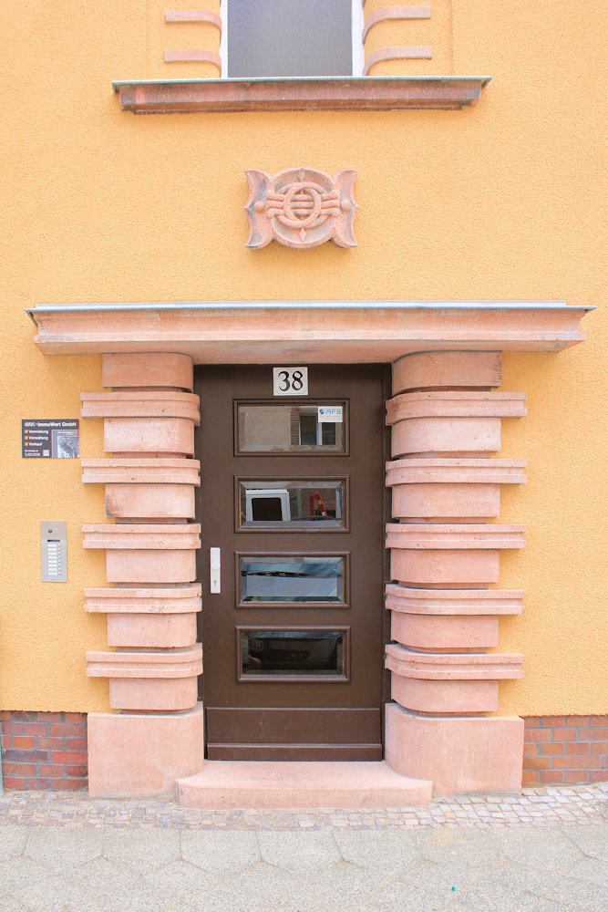 - Putzfassade, Putz-, Kunststein- und Klinkergliederungen, Tordurchfahrt