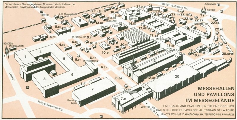 Bereits 1913 fand in Leipzig die „Internationale Welt-Spezial- ausstellung für Bauen und Wohnen“ statt. Dafür erschloss die Stadt ein 400.000 m² großes Ausstellungs- gelände in der Nähe des Völker- schlachtdenkmals und der Bau der Mustersiedlung Marienbrunn begann. Die Konzeption für das Ausstellungsgelände erarbeitete das Architektenbüro Weidenbach & Tschammer. Die meisten Ausstellungsbauten waren aus Holz, außen verputzt, innen mit einem nicht entflammbaren Imprägniergewebe bespannt und wurden nach der Ausstellung wieder abgerissen. Lediglich die Betonhalle war ein massiver Bau und überstand die Zeiten bis heute. Ab 1920 fand die Technische Messe auf dem Ausstellungsgelände der Bauausstellung statt. Die immer größer werdenden Maschinen und Anlagen ließen sich in den Messe- häusern der Innenstadt nicht mehr zeigen. In drei Hallen wurden auf 14.000 m² ca. 5.000 Maschinen gezeigt. Die wirtschaftliche Ent- wicklung der 1920er Jahre ließ auch die Technische Messe und das Messegelände weiter wachsen bis zur Weltwirtschaftskrise 1929. 1928 hab es auf dem Messegelände 17 Messehallen und weitere kleine Bauten. Ein Höhepunkt war die Internationale Pelzfach-Ausstellung 1930. 1941 fand in Leipzig kriegsbedingt die letzte Mustermesse statt. Danach wurden die Hallen des Messe- geländes für Rüstungsproduktion in Form von Flugzeugbau und -wartung genutzt. Bei dem Luftangriff auf Leipzig am 4. Dezember 1943 wurden 4 Hallen total und 14 Hallen teilweise zerstört.Die erste Nachkriegsmesse fand im Mai 1946 statt, vier Hallen auf dem Messegelände konnten genutzt werden. In den Folgejahren Erweiterungen sowie Neu- und Umbauten, darunter der 1950 aus dem ehemaligen Achilleion entstandene „Sowjetische Pavillon“, die Messehalle 7 aus dem Jahr 1980, die Messehalle 22, die 1989 bis 1992 gebaut wurde und der Verwaltungsbau am Nordeingang. Daneben entstanden noch zahlreiche kleinere Bauten und Provisorien. Die Frühjahrsmesse im März 1991 war die letzte Universalmustermesse in Leipzig und damit in der Welt. Bis 1996 wurden auf dem Messegelände noch einige Fachmessen durchgeführt. 1996 wurde das Neue Messegelände im Norden der Stadt eingeweiht.