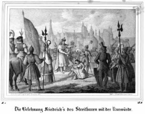 Kaiser Siegmund verlieh am 6. Januar 1423 dem aus dem Hause Wettin stammenden Markgrafen Friedrich I. von Meißen, genannt der Streitbare, die Kurwürde.Das Kurfürstentum Sachsen gab es vorher schon. 1356 ernannte Kaiser Karl IV. das Herzogtum Sachsen-Wittenberg in der Goldenen Bulle zu einem der Kurlande. Die Kurfürsten stellten die Askanier. 1422 starb die sächsisch-wittenbergische Linie der Askanier im Mannesstamm aus. Die Kurwürde fiel zurück an den Kaiser, der diese gegen den Protest der Askanier an die Wettiner verlieh. Siegmund knüpfte daran die Bedingung, dass der Name Kurfürstentum Sachsen auch für die meißnischen und thüringischen Besitzungen der Wettiner verwendet werden soll, obwohl die Kurwürde nur an einen Teil der kurfürstlichen Gebiete, den Kurkreis, das Gebiet des früheren Herzogtums Sachsen-Wittenberg.