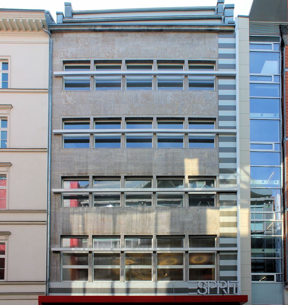 Gleich neben dem Concentrahaus steht das ehem. Kaufhaus Woolworth, dessen Fassade leider nicht original erhalten blieb. Auch diese Gebäude lässt sich dem Bauhausstil zuordnen. Die Idee der durchgängigen Glasfassade kam sicher mit Woolworth aus Amerika nach Leipzig.