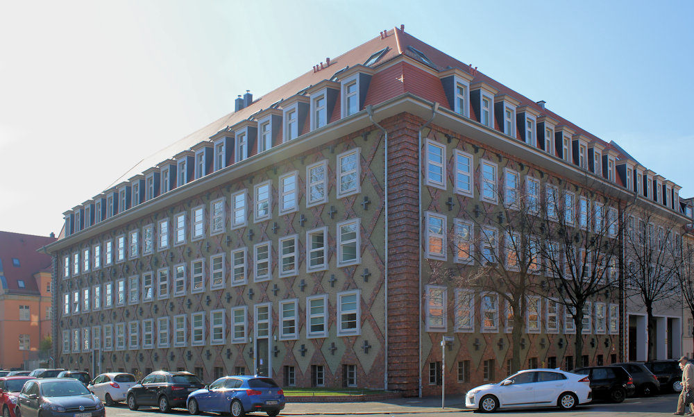 Die Entwürfe neuer Bauten in Leipzig nach 1918 waren traditionell. Stahl, Glas, polierter Stein, Messing gehörten nicht zur Formensprache der Architektur. Es mögen wirtschaftlichen Zwänge gewesen sein. Kleinteilig gegliederte Fenster, Spitzbögen der Gotik und Pfeilervorlagen an den Fassaden prägen das Bauen der frühen 1920er Jahre.