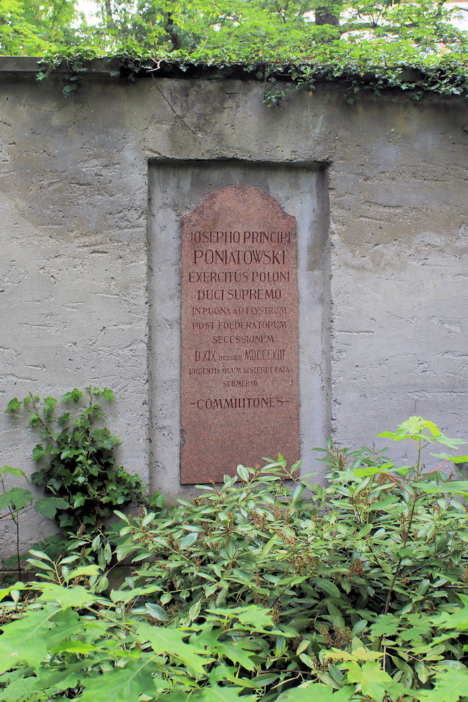 Seine Leiche wurde erst am 24. Oktober 1813 von Fischern gefunden und in der Johanniskirche aufgebahrt, einbalsamiert und zunächst in der Ratsgruft des Alten Johannisfriedhofs beigesetzt. Nach seiner Überführung nach Polen wurde der Leichnam am 10. September 1814 mit Zustimmung des russischen Zaren im Gewölbe der Heiligkreuzkirche im Zentrum von Warschau bestattet, später nach Krakau überführt und am 22. Juli 1817 in der Wawelkathedrale beigesetzt.Eine Gedenktafel verblieb in der Ratsgruft des Alten Johannisfriedhofs in Leipzig. Eine Kopie mit veränderten Text befindet sich heute auf dem Alten Johannisfriedhof. Doe Originaltafel trägt die Inschrift „Josepho Principi Poniatowski exercitus Poloni duci supremo in pugna ad Elystrum post foederatorum secessionem d. XIX. Oct. MDCCCXIII. Urgentia quum sisteret fata submerse. Commilitones.“ (Dem Fürsten Poniatowski, erstem Befehlshaber des polnischen Heeres, der, als er in der Schlacht bei der Elster, nach Trennung der Verbündeten am 19. Oct. 1813 große Drangsale bestanden, ertrank. Die Waffenbrüder.) Die Originaltafel wurde nach dem 2. Weltkrieg nach Polen verbracht. Unweit des Todesortes von Józef Poniatowski befinden sich ein Gedenkstein an der Elsterstraße und der Poniatowskiplan.