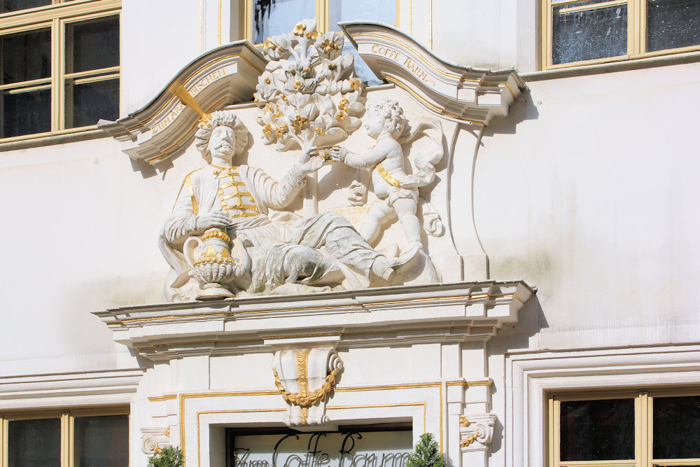 In Leipzig soll August der Starke eine Liaison mit der Wirtin des Kaffeehauses „Coffebaum“, Johann Elisabeth Lehmann, gehabt haben aus der auch ein Kind entstand. Da sich August zu Mutter und Kind nicht bekennen konnte, soll er der Wirtin die Portalplastik geschenkt haben.