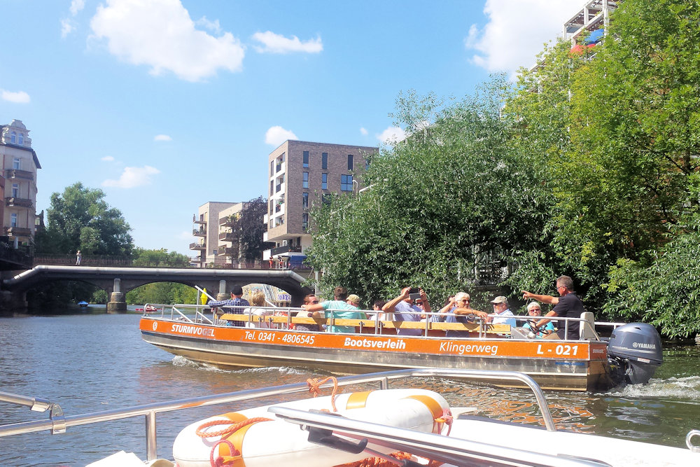 Eine Bootsfahrt durch Leipzig ist ein Erlebnis. Man sieht die Stadt von einer Seite, die man von einer europäischen Großstadt nicht erwartet. Sanierte Industriebauten, die heute moderne Wohnungen und Restaurants beherbergen, modernen Wohnbauten wechseln mit dem üppigen Grün des Leipziger Auwaldes und der Parkanlagen in der Innenstadt. Nur 15 Minuten vom Zentrum entfernt wähnt man sich mancherorts im Spreewald.