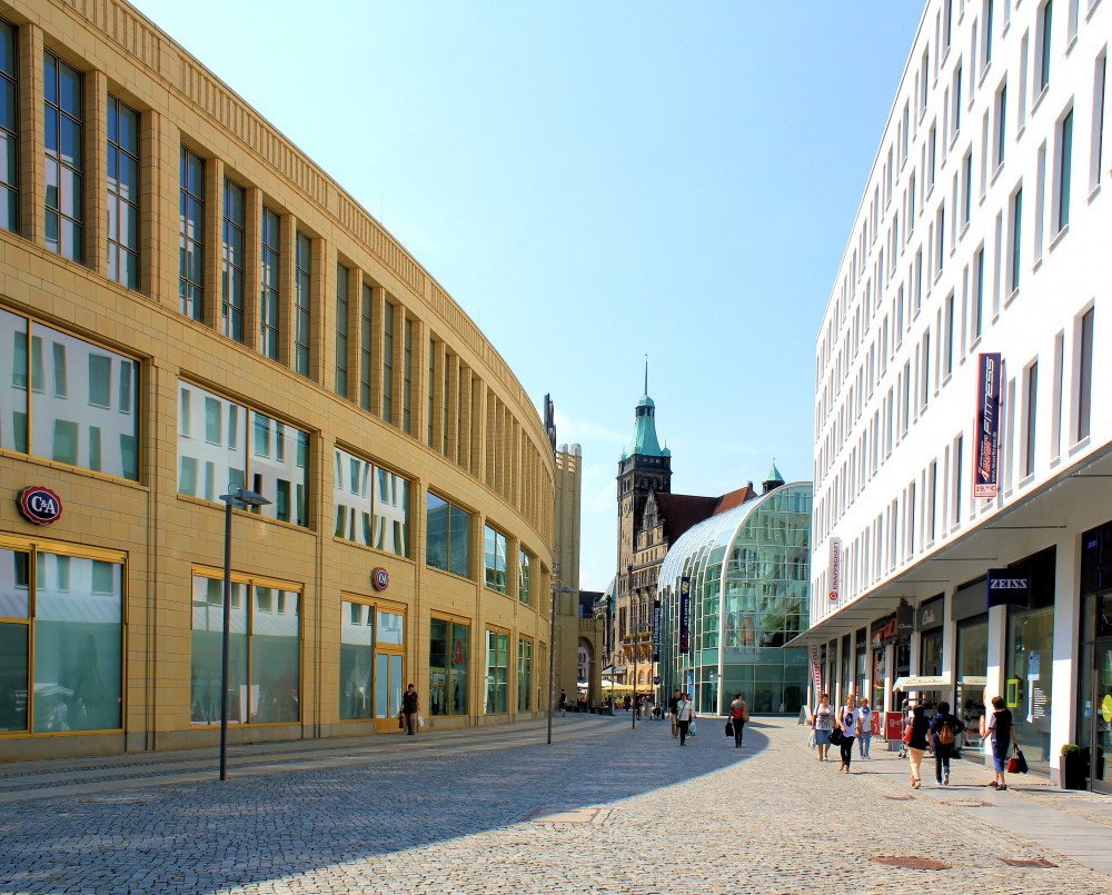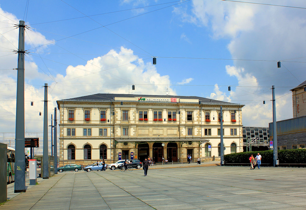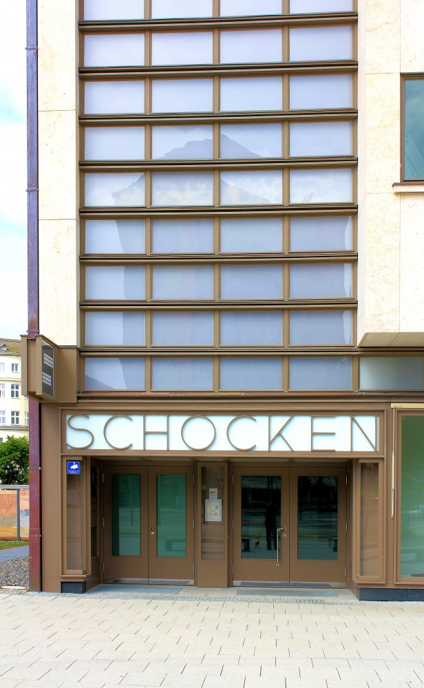 An der Kreuzung Bahnhofstraße/Brückenstraße steht das ehemalige Warenhaus Schocken [6], heute Landesmuseum für Archäologie. Das Gebäude, das 1930 von Erich Mendelssohn erbaut wurde, ist eines der bedeutendsten Beispiele für das Bauen der Neuen Sachlichkeit.
