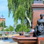 Weiter entlang der Bahnhofstraße führt der Stadtrundgang zum Falkeplatz [9]. Die städtebauliche Wirkung des Platzes wurde nach dem 2. Weltkrieg nicht wieder hergestellt.