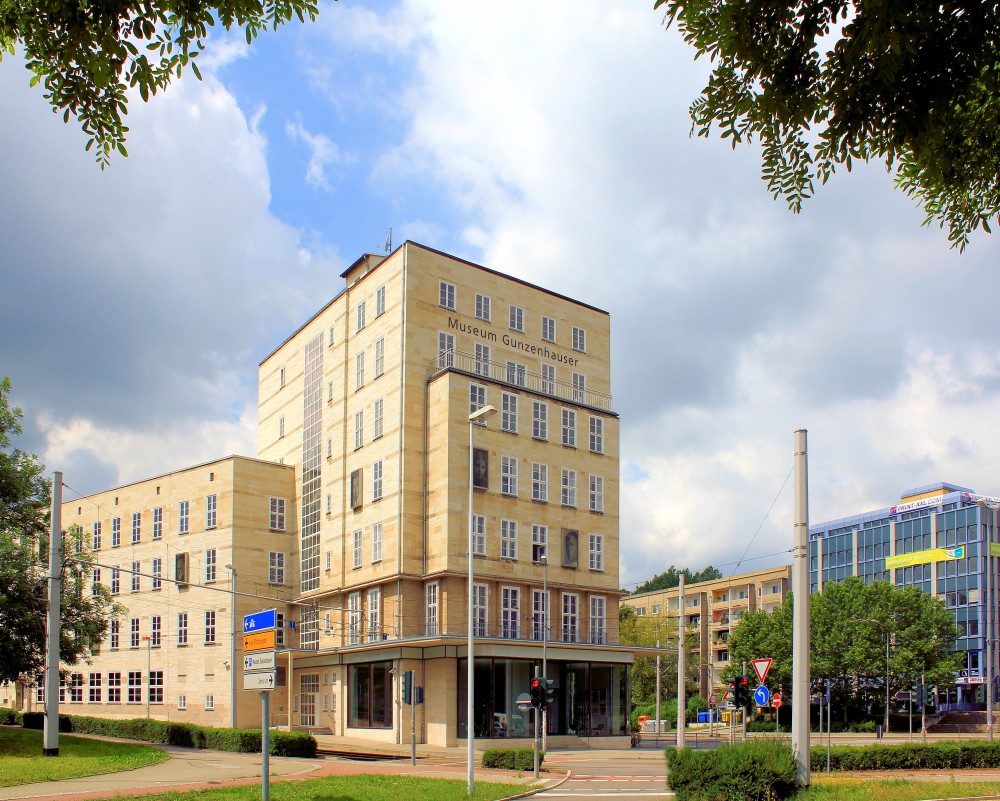 Dennoch stehen am Falkeplatz zwei bedeutende Bauten der Moderne: die Deutsche Bank, 1925-1926 mit einer konkav geschwungenen Fassade erbaut, und das Museum Gunzenhauser.