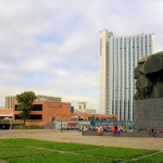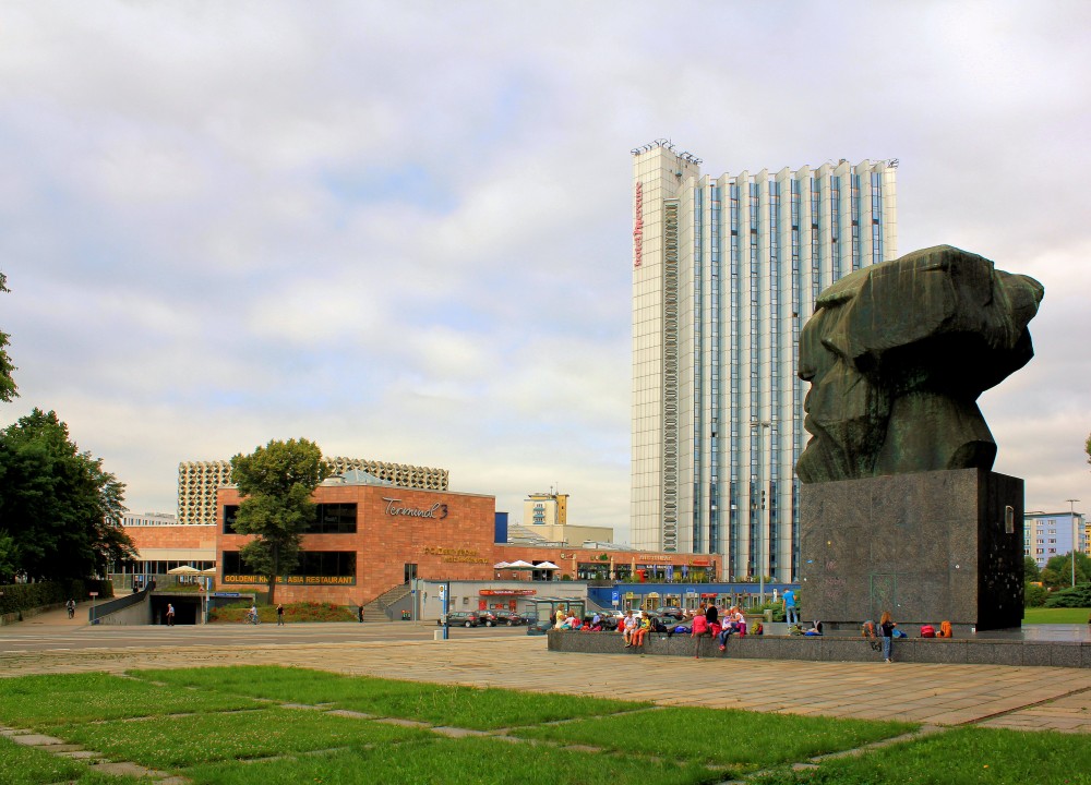 An der Brückenstraße steht das wohl berühmteste Monument der Stadt Chemnitz – das Karl-Marx-Monument [5], von den Chemnitzern auch „Nischel“ genannt.